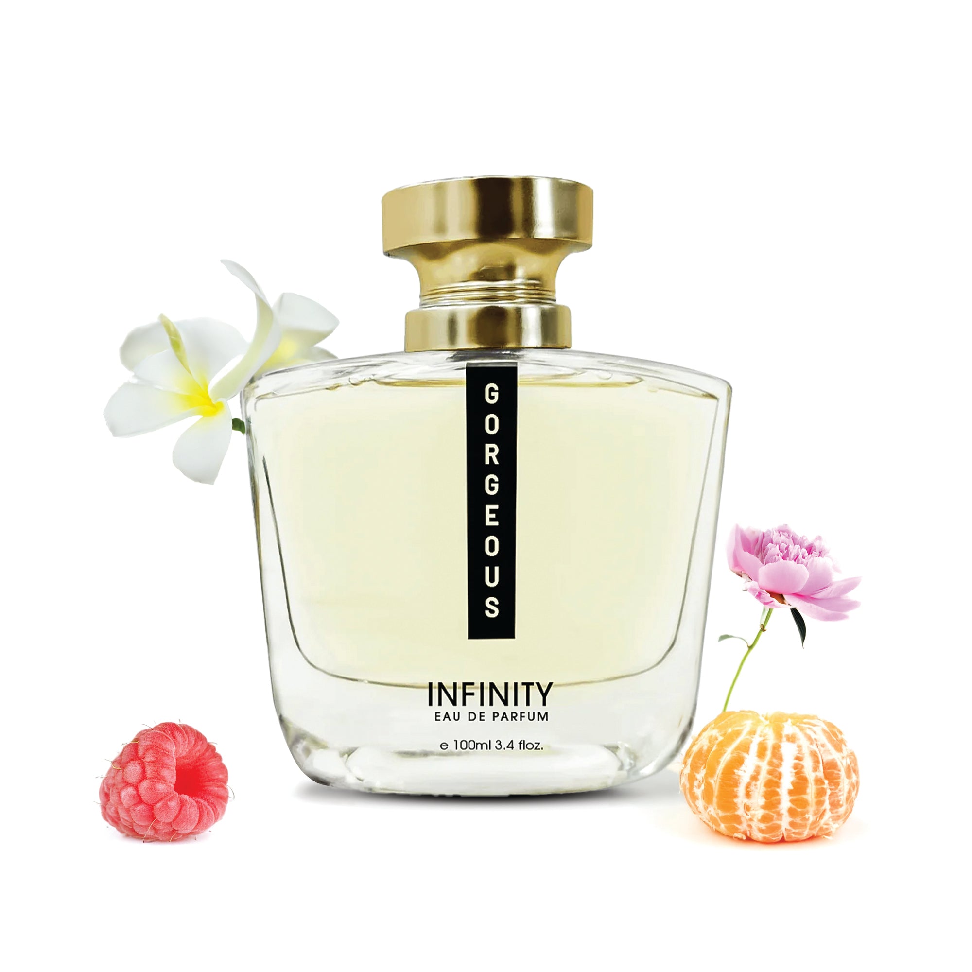 Gorgeous EDP: Unveil your inner beauty with Infinity Gorgeous, a fragrance that celebrates the essence of your individuality. This captivating perfume, belonging to the floral-fruity family, combines Madagascar Vanilla, Powdery Musk, Lemon, Mandarin Orange, Mint, Cinnamon, Vetiver, Ambergris, and White Musk.