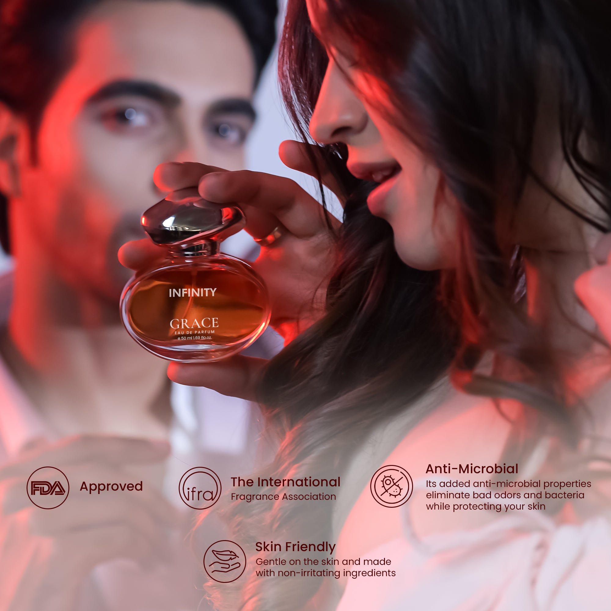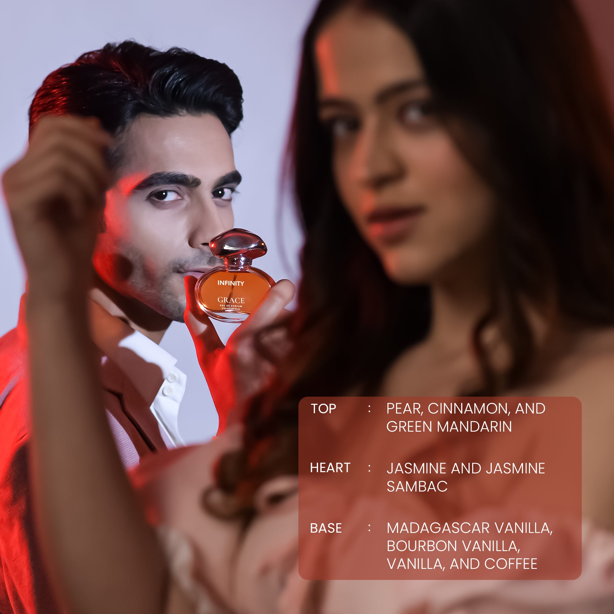 Step into a world of understated elegance and timeless sophistication with Grace, a fragrance that radiates warmth and charm. This luxurious scent is a harmonious blend of fruity, floral, and gourmand notes, creating a captivating and unforgettable olfactory experience.
