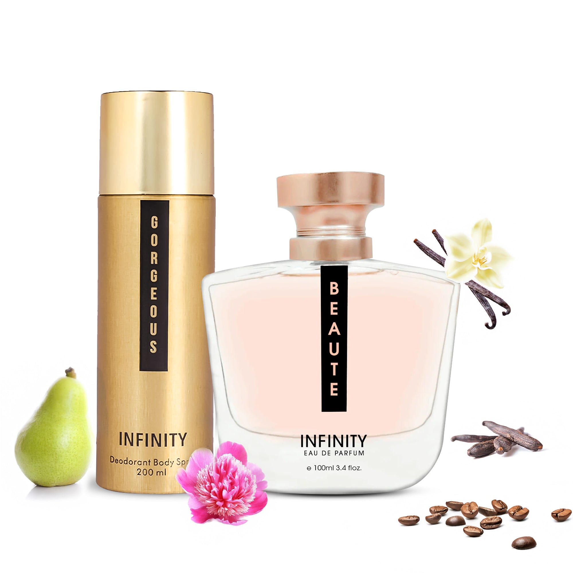 This combo includes one EDP & one Deodorant i.e., Beaute EDP & Gorgeous Deodorant.