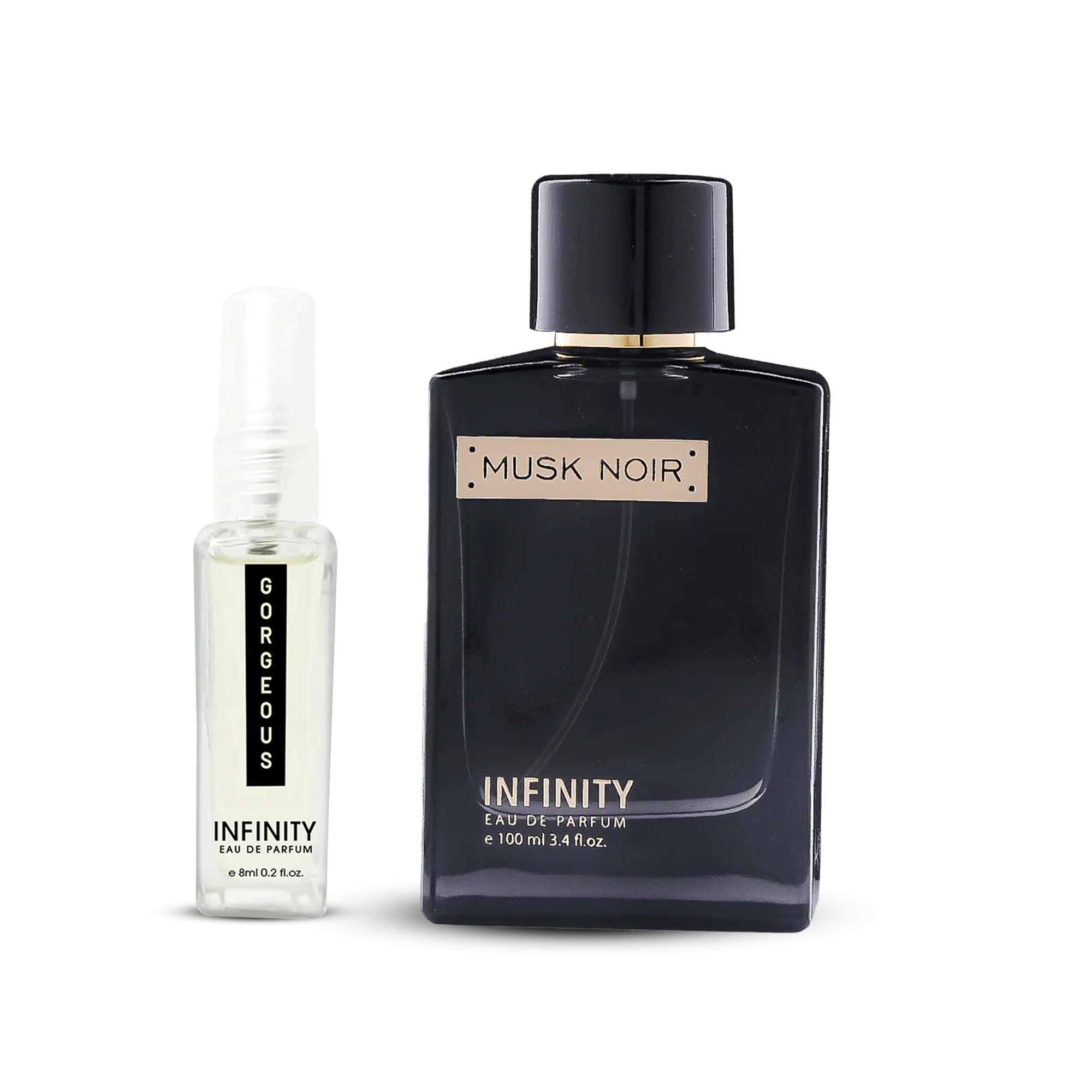 This combo includes a Musk Noir EDP & trial pack of Gorgeous.
