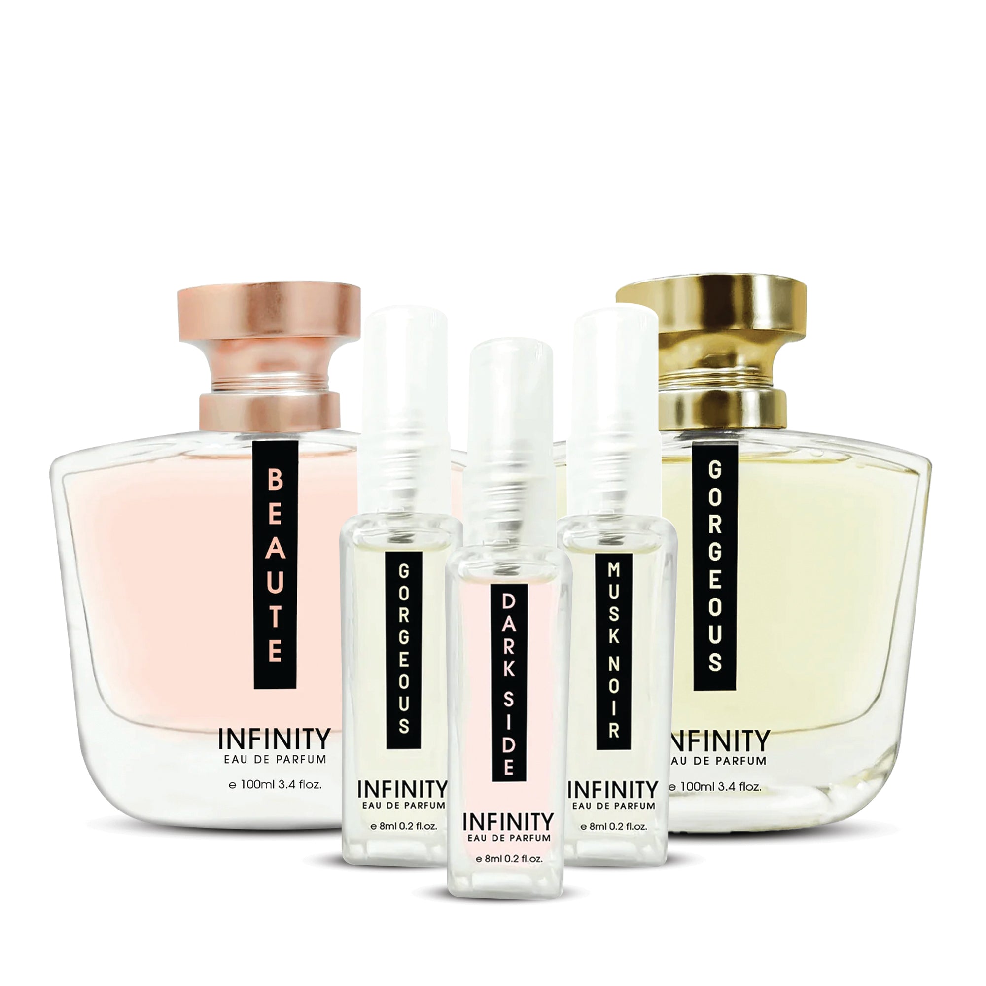 Gorgeous EDP: Unveil your inner beauty with Infinity Gorgeous, a fragrance that celebrates the essence of your individuality. This captivating perfume, belonging to the floral-fruity family, combines Madagascar Vanilla, Powdery Musk, Lemon, Mandarin Orange, Mint, Cinnamon, Vetiver, Ambergris, and White Musk.