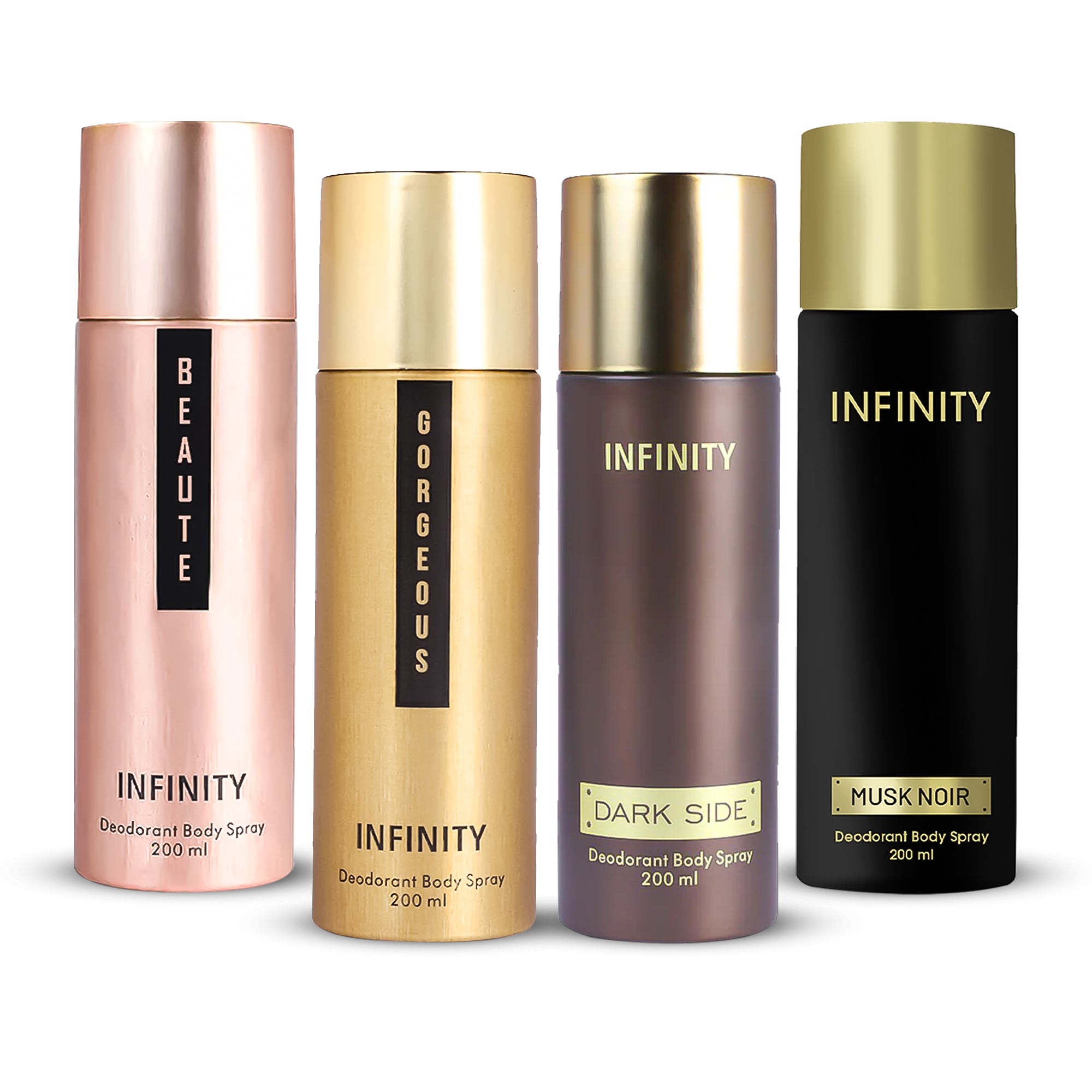 Musk Noir Deodorant: Unleash your inner power and embrace your individuality with Infinity Musk Noir, the elixir that defines confidence and allure. This aromatic fragrance combines fresh Lemon, Mandarin Orange, Mint, Cinnamon, Vetiver, and White Musk. Let Infinity Musk Noir be your signature Deo, empowering you to make a lasting impression wherever you go.
