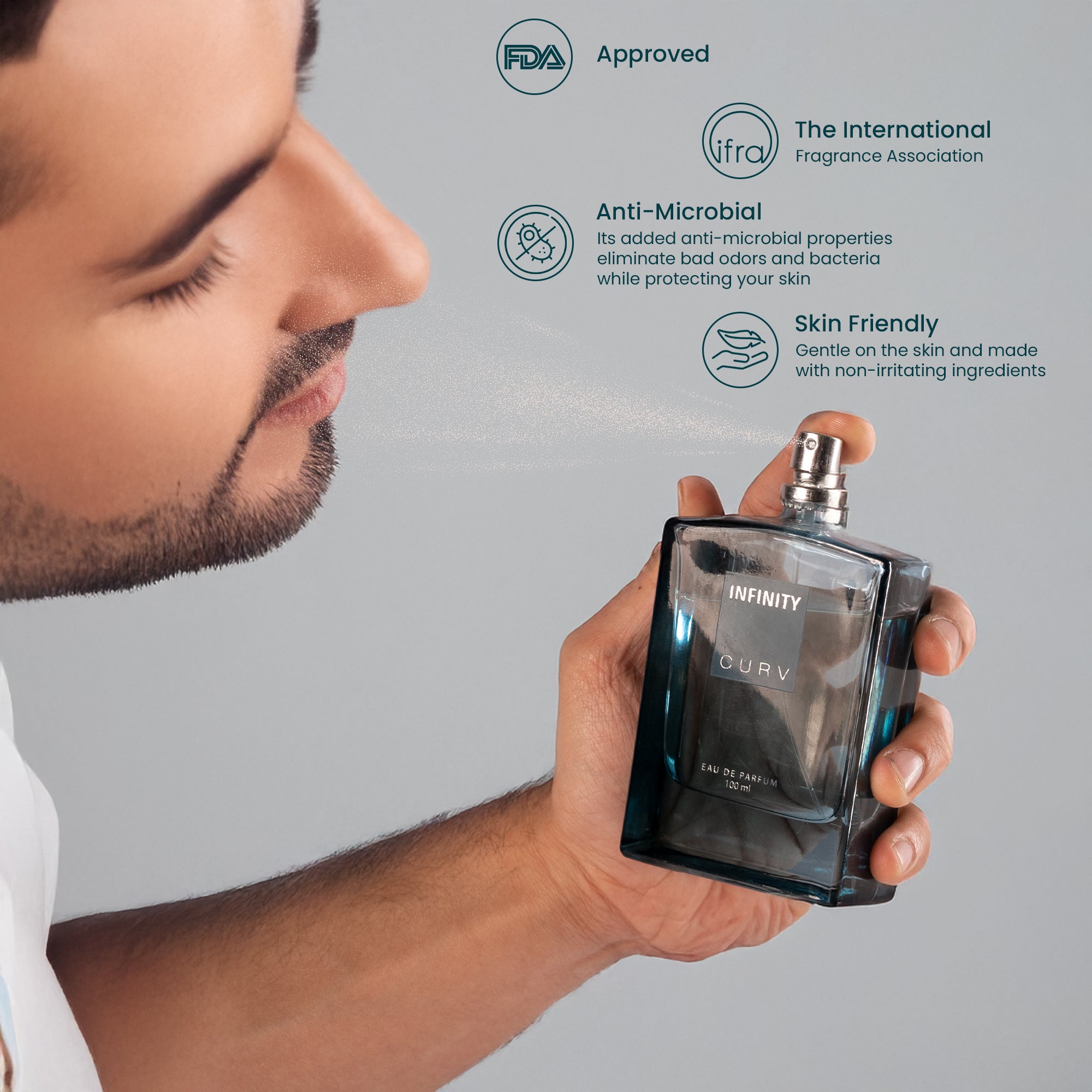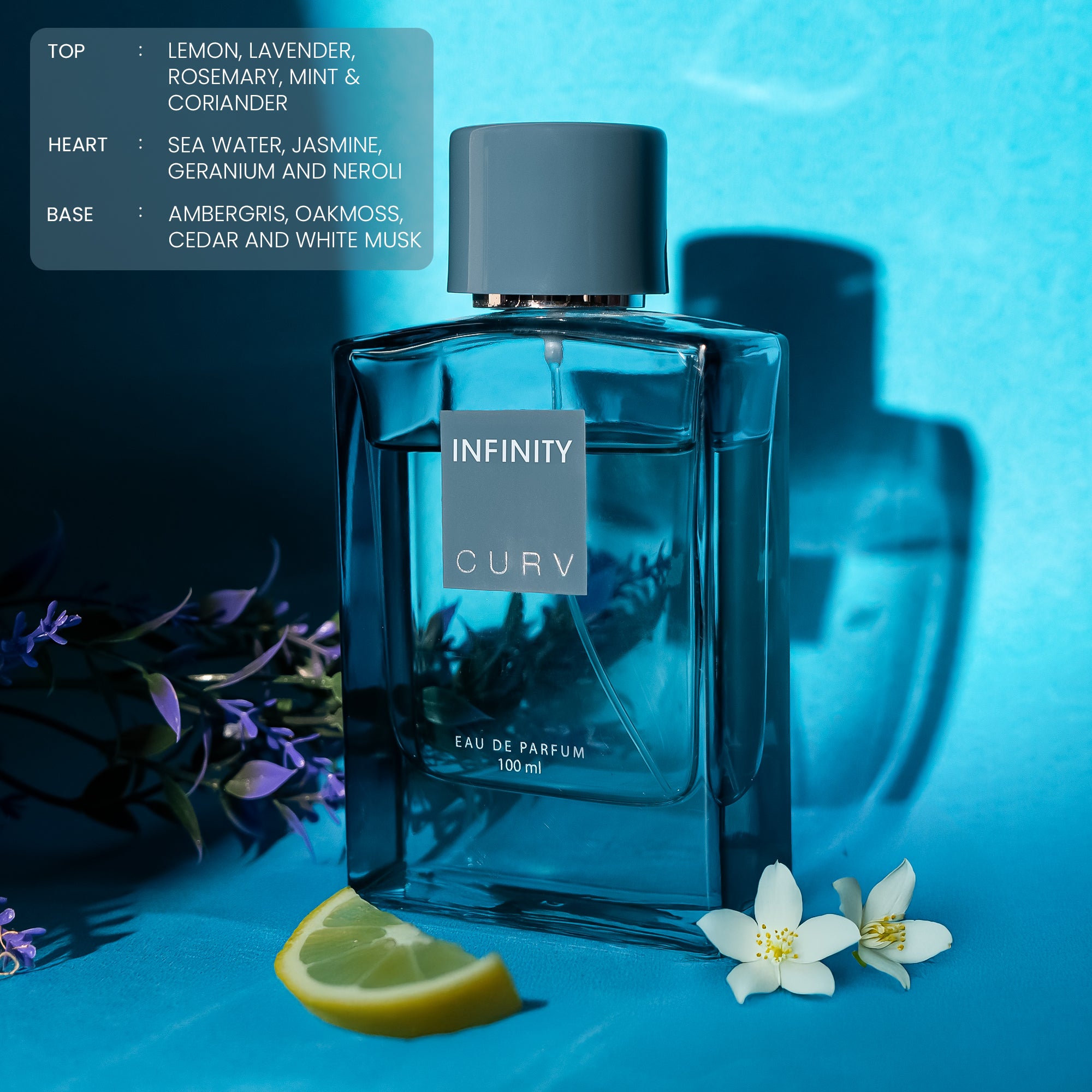 Infinity Curv: Experience the boundless energy of the ocean with a refreshing 12-hour long-lasting fragrance with an Infinity Curv. Catch the Wave is a refreshing beach escape bottled. Feel the invigorating spray of ocean mist and the warmth of sun-kissed sand. This exhilarating scent perfectly complements the enthusiastic spirit of travelers, athletes, and anyone who embraces life's adventures.
